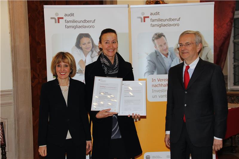 Südtirol stützt sich auf ein europaweit anerkanntes Managementsystem und orientiert sich bei der Zertifizierung der Familienfreundlichkeit von Unternehmen an den Richtlinien des „european work & family audit“, einer Initiative der gemeinnützigen Hertie-Stiftung in Deutschland.