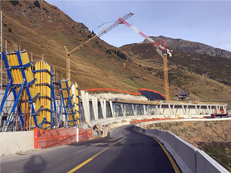 Die neue 180 Meter lange Galerie unterhalb der Passhöhe in St. Leonhard in Passeier ist seit vergangener Woche geöffnet. Die fünf Meter hohe und Galerie ist an der Längsseite offen und wird durch v-förmig angeordnete Betonpfeiler gestützt. Ihre Breite beträgt einschließlich Servicegehsteig und Leiteinrichtungen neun Meter.