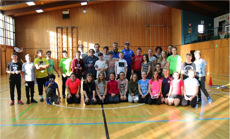 Erster Schulbesuch im Rahmen von "Sport macht Schule“. LR Achammer: "Sportler sind Vorbilder und fördern das Bewusstsein für mehr Bewegung und Sport."