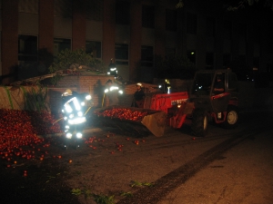 Da aus der Zugmaschine Öl austrat, musste der LKW rasch geborgen werden: zuerst wurden die Pfirsiche mit einem Bagger auf einem anderen Sattelauflieger umgeladen, anschließend wurde der LKW mittels Kran der Berufsfeuerwehr Bozen wieder auf seine Räder gestellt und zu einem angrenzenden Parkplatz abgeschleppt. Die Bergungsarbeiten dauerten ca. 3 Stunden. Im Einsatz standen die Freiwilligen Feuerwehren von Untermais, Meran und Obermais, das Weisse Kreuz und die Carabinieri.