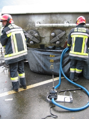 Nach dem Zusammenstoß mit einem PKW verlor der Fahrer eines Tankwagens, der mit Dieselöl beladen war, die Herrschaft über sein Fahrzeug, kippte seitlich um und verwickelte ein weiteres Fahrzeug sowie ein Kleinmotorrad in den Unfall. Durch den Aufprall wurden zwei Insassen in dem PKW eingeklemmt und mußten mit hydraulischen Bergegeräten von den Mannschaften der Berufsfeuerwehr Bozen befreit werden.