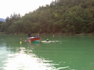 Zusammen mit der Bezirkstauchergruppe Bozen der Freiwilligen Feuerwehren und der Südtiroler Wasserrettung hat die Tauchergruppe dieser Berufsfeuerwehr  nach dem gestrigen Badeunfall heute morgen um 07.00 Uhr die Suche nach dem Vermißten wiederum aufgenommen. Da bereits gestern durch verschiedene Zeugenaussagen eine Zone mit Signalbojen ausgesteckt wurde, führte man heute die systematische Suche innerhalb dieses abgesteckten Feldes fort. Sehr erschwerend für die Taucher war die zur Zeit sehr schlechte Sicht im Wasser, sodass sie sich praktisch blind am Seeuntergrund vortasten mussten. Zudem beträgt die Wassertemperatur am Seeuntergrund gerade ein wenig über 10° C. Um 10.40 Uhr konnte die vermißte Person in 9 Meter Tiefe gefunden, ans Ufer gebracht und den Behörden übergeben werden.