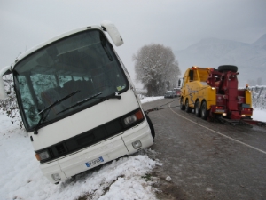 Am Montag, den 29.11.2010 ist die Kranmannschaft dieser Berufsfeuerwehr von der Freiwilligen Feuerwehr Kurtatsch zur Verstärkung auf die Landesstrasse Nr. 58 zwischen Kurtatsch und Neumarkt gerufen worden. Ein Bus eines privaten Unternehmens ist auf der schneebedeckten Fahrbahn ins Rutschen gekommen und blieb seitlich geneigt mit den rechten Reifen im Strassengraben stehen. Mittels Kranfahrzeug und eines Abschleppwagens von einem Privatunternehmens wurde der Bus wieder auf die Fahrbahn gehoben. Er konnte ohne Schaden seine Fahrt wieder fortsetzen. Der Bus war zum Zeitpunkt des Zwischenfalles ohne Passagiere. Die Landesstrasse war ca. 2 Stunden während der Bergungsarbeiten gesperrt. Vor Ort waren neben der Kranmannschaft der Berufsfeuerwehr auch die Freiwillige Feuerwehr Kurtatsch, die Carabinieri von Kurtatsch sowie der Landesstrassendienst.