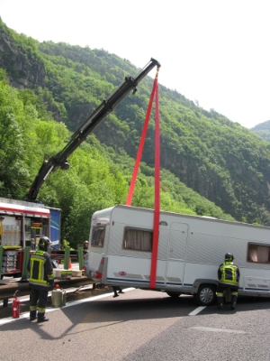 Zur Mittagszeit wurde die Mannschaft der Berufsfeuerwehr Bozen zu einem Verkehrsunfall auf die Brennerautobahn gerufen. Auf der Südspur bei Kilometer 65, zwischen Klausen und Bozen Nord, war ein Pkw mit Wohnanhänger verunfall. Dabei kippte das Fahrzeug um und der Anhänger stellte sich auf der Fahrbahn quer, wobei dieser auf den Mittelleitplanken aufsaß. Die Insassen wurden vom bereits eingetroffenen Rettungsdienst versorgt und ins Krankenhaus gebracht. Gemeinsam mit der Freiwilligen Feuerwehr Klausen wurden das Fahrzeug aufgestellt und der Wohnanhänger von den Leitplanken gehoben. Während des Einsatzes blieb eine Fahrbahn der Nordspur, sowie kurzzeitig die gesamte Südtspur für der Verkehr geschlossen. Am Einsatzort waren auch die Straßenpolizei und der Straßendienst der A22.