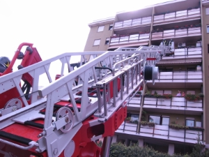 Foto BF BZ VVF BZHeute, Donnerstag, den 1. September 2011 um 14.30 Uhr ca. ist diese Berufsfeuerwehr Bozen zu einem Wohnungsbrand in die Ortlerstrasse in Bozen alarmiert worden. Im 4. Stock hatte im Wohnzimmer ein Sofa Feuer gefangen. In der Wohnung befanden sich eine Grossmutter mit dem 19 Monaten alten Enkel. Beide konnten sich ins Stiegenhaus in Sicherheit bringen und wurden zusammen mit zwei weiteren älteren Personen vom 5. Stock ins Krankenhaus eingeliefert mit Verdacht auf Rauchgasvergiftungen. Die Grossmutter hat auch leichte Verbrennungen im Gesicht erlitten. Der Brand wurde über eine Drehleiter innerhalb weniger Minuten gelöscht. Als Brandursache gehen wir von einem elektrischen Defekt aus. Vor Ort waren der Notarzt der Landesnotrufzentrale, zwei Rettungswägen des Roten und Weissen Kreuzes und drei Funkstreifen der Bozner Questur.