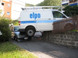Zeitgleich ereignete sich in der Nicolodistrasse in Bozen ein weiterer spektakulärer Unfall, bei welchem glücklicherweise niemand Verletzt wurde. Ein schlecht geparkter Lieferwagen ist von einem Parkplatz aus selbständig ins Rollen geraten, er rollte rückwärts aus dem Parkplatz die abschüssige Nicolodistrasse entlang über eine kleine Wiese an deren Ende durchbrach er einen Zaun und stürzte auf ein dort abgestelltes Fahrzeug. Die Fahrerin des abgestellten Fahrzeuges brachte gerade ihre Kinder in den darunterliegenden Kindergarten und befand sich somit nicht im Fahrzeug.