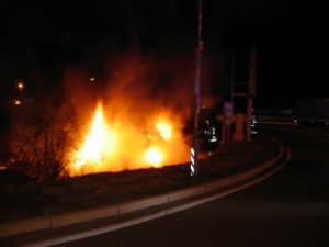 Ein Fahrzeug ist aus noch zu klärenden Gründen von der Strasse abgekommen und im darunterliegenden Strassengraben gelandet. Das Fahrzeug fing sofort Feuer. Glücklicherweisse konnte sich der nur leicht verletzte Fahrzeuglenker, welcher sich alleine im Fahrzeug befand, selbst aus dem Fahrzeug befreien. Beim Eintreffen der Einsatzkräfte stand das Fahrzeug in Vollbrand.