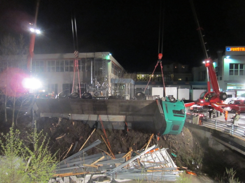 FOTO BFBZ VVFBZGegen 17:30 ca. wurde diese Berufsfeuerwehr zu einem Kraneinsatz ins Villnößtal gerufen. Dort in der Nähe des Werkes der Firma Finstral geriet ein Sattelschlepper aus noch ungeklärten Gründen über eine Böschung und landete im Bachbett. Der Fahrer verletzte sich dabei nicht. Der Anhänger hatte Metallprofile geladen. Um das verunfallte Fahrzeug bergen zu können, wurden zunächst die Metallprofile geborgen. Erschwert wurden die Arbeiten durch den stark wasserführenden Villnößer Bach. Mittels zweier Kräne konnte der Auflieger samt Zugmaschiene anschließend wieder auf die Straße gestellt werden. Die Arbeiten dauerten bis kurz vor Mitternacht. Im Einsatz standen neben dieser Berufsfeuerwehr, die Freiwillige Feuerwehr St.Peter Villnöss und die Carabinieri.