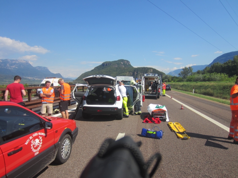 Im Einsatz standen neben dieser Berufsfeuerwehr Bozen, das Weisse Kreuz von Neumarkt, Salurn und Bozen, die Freiwillige Feuerwehr von Neumarkt, die Strassenpolizei und die Strassenmeisterei der Autobahn, sowie mehrere Abschleppfahzeuge.