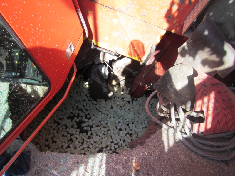 Foto BF BZ VVF BZ Der Untergrund gab unter einer Stütze nach, die Feuerwehr legte Bindemittelwürfel aus, um jegliche Bodenverschmutzung zu vermeiden.