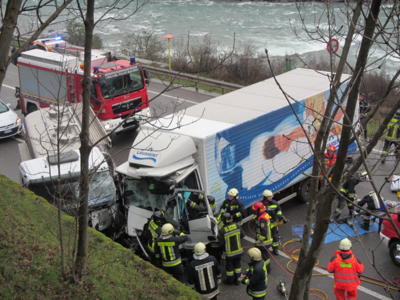 Nach der ersten Lageerkundung vor Ort führte die Mannschaft der Berufsfeuerwehr Bozen in Zusammenarbeit mit der Freiwilligen Feuerwehr Kardaun und dem Rettungsdienst die Rettung einer eingeklemmten Person durch. Hierzu war es notwendig hydraulische Bergegeräte einzusetzen. Während des Einsatzes musste die Straße komplett für den Verkehr gesperrt werden. Nach der erfolgten Personenrettung wurde auch der verunfallte Lkw mittels Seilwinde auf den Pannenstreifen gezogen, um möglichst schnell die Straße wieder für den Verkehr freizugeben. Im Einsatz standen neben den bereits erwähnten Einsatzkräften auch ein Notarztteam, die Stadtpolizei von Bozen, die Questur, Carabinieri und der Landesstraßendienst.