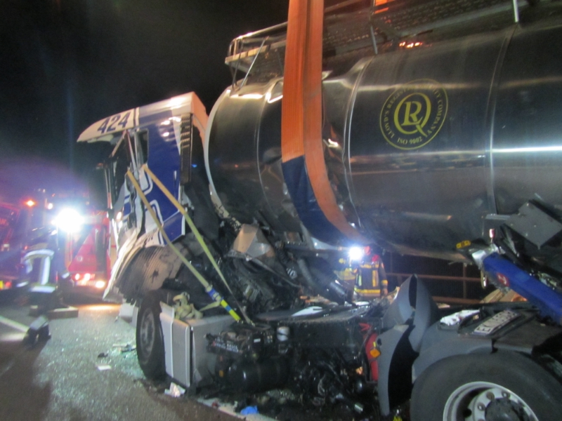 Zwei Sattelzüge in einem Auffahrunfall verwickelt – eine Person eingeklemmt