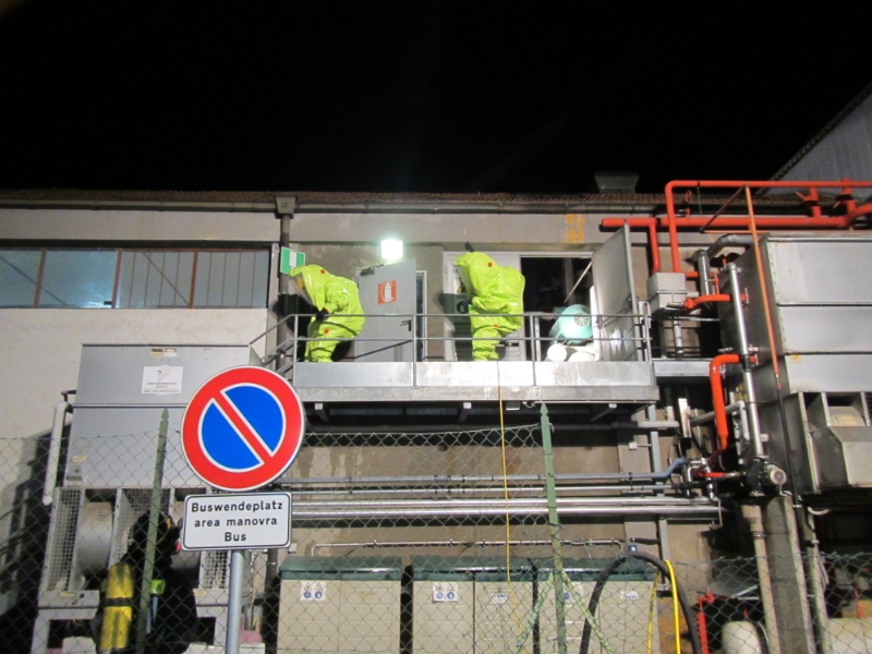 Gegen 20:40 Uhr wurde diese Berufsfeuerwehr Bozen zusammen mit den örtlichen Freiwilligen Feuerwehren zu einem Gefahrguteinsatz nach Vilpian gerufen. Dort gab es einen grösseren Austritt von Ammoniak bei einer Obstgenossenschaft.