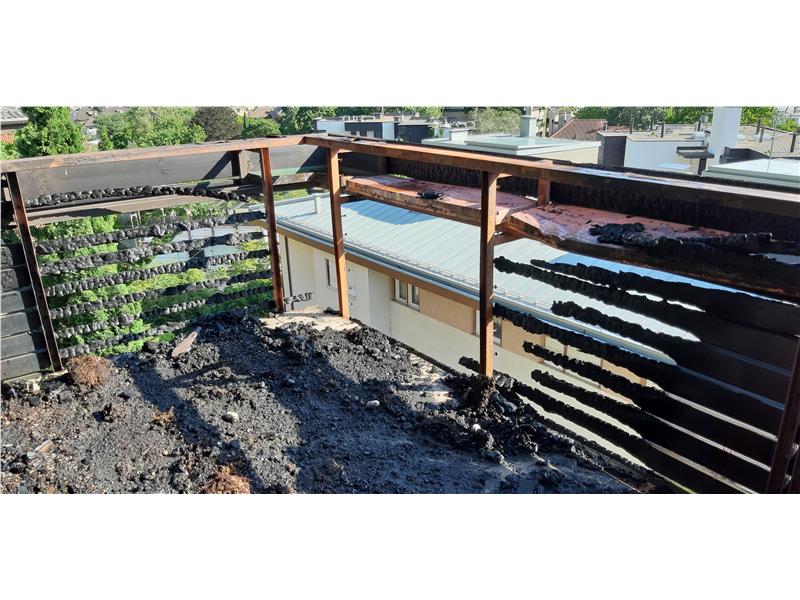 Die Schäden begrenzten sich auf dem vom Brand betroffenen Balkon und in einem kleineren Ausmaß, auch auf die darunterliegenden Balkone und den Garten.
