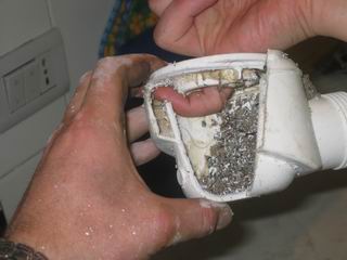Anschliessend wurde der Kunststoffsiphon mit der Handbügelsäge aufgeschnitten.
