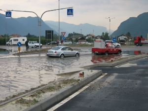Foto BFBZEin weitere Nachmittag, an dem Gewitter über Bozen niedergingen und zu starken Überschwemmungen im Stadtgebiet führten. Ungefähr 80 Einsätze waren in der Zeit zwischen 16:45 Uhr und 22:00 Uhr durchzuführen. Unter den vielen Einsätzen sind zwei besonders anzuführen. Im Schwimmbad des Pfarrhofzentrums kam es zu einer größeren Überschwemmung, da ein Waal, der hinter der Schwimmhalle vorbeiführt, die Wassermassen nicht mehr ableiten konnte und übertrat. Weiters musste eine Mannschaft ein Fahrzeug aus der Unterführung in der Einsteinstraße ziehen, welches dort wegen der Überschwemmung stecken geblieben war.