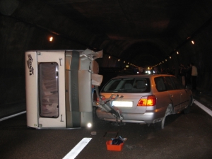 Autos überschlagen sich auf der Nordspur des MEBO Tunnels bei Sigmundskron
