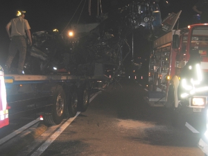 Am Mittwoch, den 21.06.2006 um 01.50 Uhr wurde der Einsatz des Autokranes und des Radladers dieser Berufsfeuerwehr für einen Verkehrsunfall auf der MeBo Höhe Algund angefordert. Ein mit Ziegelsteinen beladener LKW stieß gegen die Mittelleitschienen aus Beton, den sogenannten Jearsy und verstreute seine Ladung auf beide Fahrspuren. Während der LKW komplett zerstört wurde, zog sich der Fahrer nur leichte Verletzungen zu. Die Bergungsarbeiten der in alle Richtungen verstreuten Fahrzeugteile und der Ladung, sowie die Reinigung der Fahrbahnen waren sehr arbeitsintensiv und dauerten bis 05.30 Uhr an. In sehr guter Zusammenarbeit mit den Freiwilligen Feuerwehren von Meran und Algund, den Carabinieri von Burgstall und des Strassendienstes des Landes konnte die Schnellstrasse MEBO in den frühen Morgenstunden wieder für den Verkehr frei gegeben werden, sodass keine allzu grossen Verkehrsbelastungen auftraten.