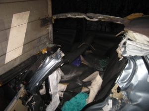 Ein PKW fährt auf einen fahrenden LKW auf und verkeilt sich in Hänger - PKW Fahrer überlebt verletzt - Ein Weihnachtswunder