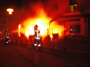 Um 3:00 Uhr rückte eine Mannschaft dieser Berufsfeuerwehr zu einem Markisenbrand in der "Bar San Giorgio" in die Baristrasse in Bozen aus. Die Markise und einige darunterstehende Tische und Stühle aus Kunststoff brannten lichterloh, die Flammen ragten bis zum zweiten Stockwerk des darüberliegenden Kondominiums.
