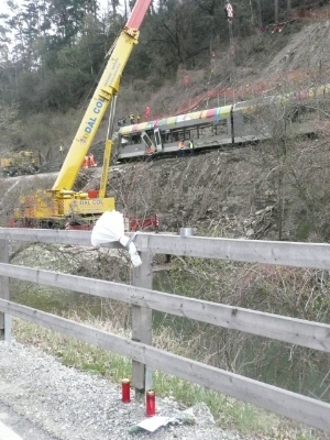 (LPA) Die Arbeiten zur Bergung des Unglückszugs zwischen Kastelbell und Latsch schreiten voran. Das Zugwrack wird auf ein Abstellgleis geschleppt, danach der Hang oberhalb der Unfallstelle gesichert. In der Zwischenzeit stehen die Termine für die psychologische Nachbetreuung der Einsatzkräfte und die am Unfallort sichergestellte persönliche Habe der Passagiere wurde den Carabinieri übergeben.