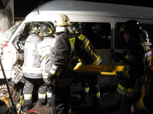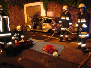 Am Samstag, den 14.08.2010 gegen 1.00 Uhr ist diese Berufsfeuerwehr zunächst von der Landesnotrufzentrale zu einem schweren Verkehrsunfall nach Blumau alarmiert worden. Ein PKW des Typs Fiat Punto geriet dort kurz vor der Einfahrt in die Ortschaft, aus bisher ungeklärten Gründen ins Schleudern und prallte in die Zufahrtstore der sich dort befindlichen Pumpstation der Gemeinde. Die beiden Insassen verletzen sich dabei mittelschwer bis schwer und wurden mit hydraulischen Rettungsgeräten in Zusammenarbeit mit der Freiwilligen Feuerwehr Kardaun befreit. Die Staatsstraße blieb bis zum Ende der Arbeiten in beiden Richtungen für ca. 1 Stunde gesperrt. Gegen ca. 4:30 wurden wir schließlich auf die Südspur der Autobahn A22 zwischen Bozen Nord und Bozen Süd, kurz vor der Einfahrt in den Virgeltunnel, gerufen, nachdem ein Kleinbus mit polnischen Kennzeichen auf einen Sattelschlepper aus der Slowakei, wiederum aus noch nicht geklärten Umständen, aufgefahren war. Die 5 Insassen wurden dabei schwerstens eingeklemmt und konnten nur mit hydraulischen Rettungsgeräten befreit werden. Auch hier mußte die komplette Südspur für ca. 1,5 Stunden gesperrt werden. Die Rettungsaktion gestaltete sich als schwierig, da der Kleinbus zusätzlich im Hinterbereich große Mengen an Reisegepäck geladen hatte, welches ungesichert durch den Aufprall nach vorne rutschte und die Insassen auf kleinstem Raum einquetschte. Im Einsatz waren neben dieser Berufsfeuerwehr ausserdem auch noch folgende Organisationen: Mehrere Rettungswagen des Weissen und Roten Kreuzes, Notärzte aus Bozen und Brixen, die Freiwilligen Feuerwehren von Klausen und Kardaun, sowie Strassenpolizei und Straßenmeisterei der Autobahn.