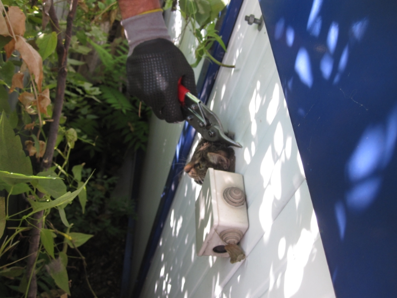 Vermutlich war die Katze schon länger in dieser misslichen Lage, denn sie war sehr geschwächt.