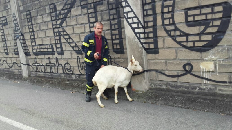 Tierische Einsätze sind bei der Berufsfeuerwehr Bozen nichts Neues, jedoch konnte heute Vormittag die Palette der in den letzten Monaten eingefangenen Tiere wieder erweitert werden. Ein Passant hatte in der Buozzi Straße eine entlaufene Ziege gesichtet und daraufhin die Feuerwehr verständigt. Stadtpolizei und Feuerwehr nahmen daraufhin die Suche auf und konnten die Ziege schließlich in der Achille Grandi Straße sichten, wo sie ein Passant bereits eingefangen hatte. Nach Kontaktaufnahme mit dem Schlachthof konnte bestätigt werden, dass sie von dort entlaufen war. Der sichtlich erschöpften Ziege wurde von einem Hydranten Wasser gegeben. Nachher wurde sie mit einer Leine versehen und zu Fuß von einem Feuerwehrmann wieder zum Schlachthof geführt.