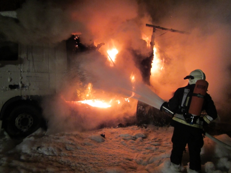 Die Brandursache dürften überhitzte Bremsen sein, da der Fahrer bemerkte, dass während der Fahrt ein Reifen Feuer gefangen hatte, er aber dieses Feuer nicht mehr mit einem Pulverlöscher im Stande war zu löschen.