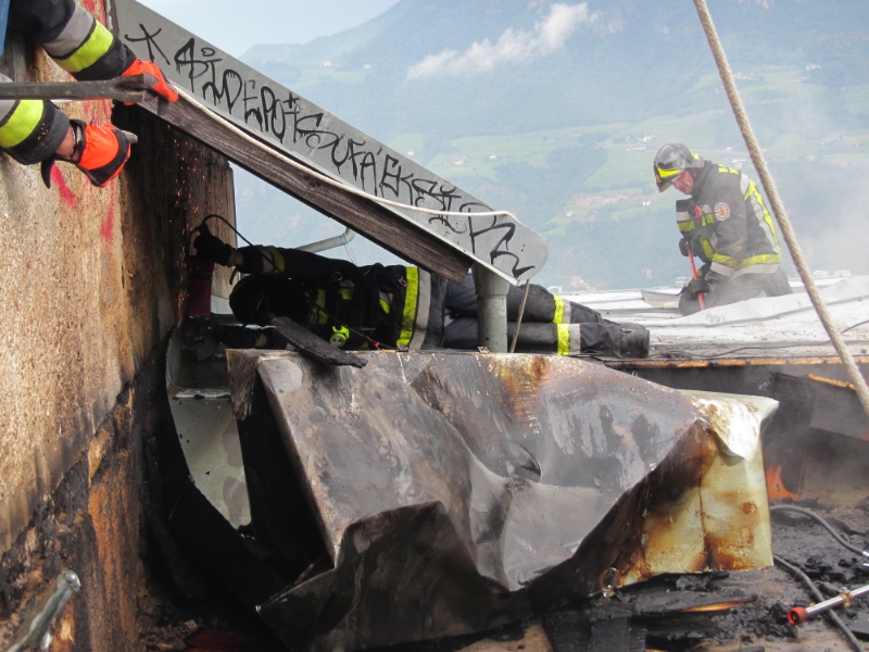 Heute Vormittag wurde vom Bozner Dom aus eine Rauchentwicklung am Virgl entdeckt. Beim Eintreffen der Mannschaft der Berufsfeuerwehr Bozen wurde ein Schwelbrand im Dachbereich der Bergstation festgestellt. Der Einsatz im verlassenen Gebäude gestaltete sich aufwändig, da viele Bereiche des Gebäudes einsturzgefährdet sind. Des Weiteren musste ein Teil des Blechdaches aufgeschnitten und entfernt werden, um zum Brandherd zu gelangen. Die Einsatzmannschaft konnte nur mit Hilfe von Absturzsicherungen vorgehen. Unterstütz wurde die Berufsfeuerwehr von der Freiwilligen Feuerwehr Oberau.