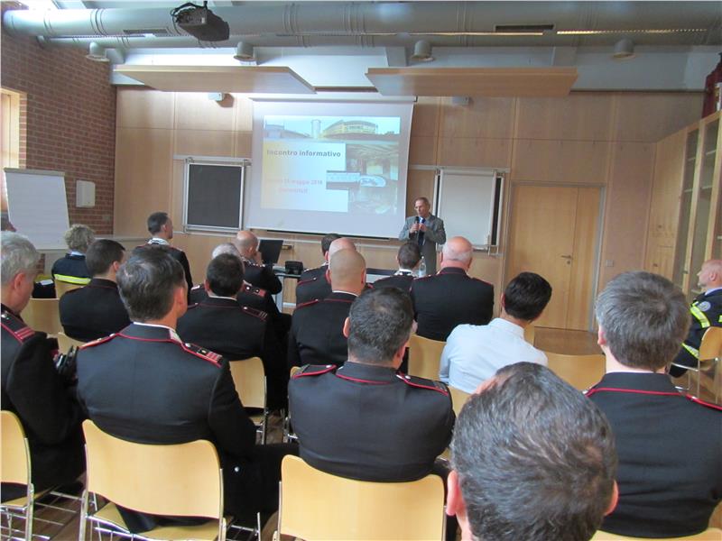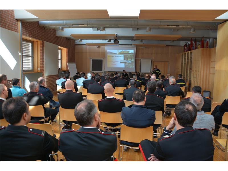 Am vergangenen Mittwoch und heute Vormittag tagten die Stationskommandanten der Carabinieri am Sitz der Berufsfeuerwehr Bozen. Thema war die Ermittlungstätigkeit nach Bränden. Nach der Begrüßung durch den Staatsanwalt Dr. Axel Bisignano, den Landeskommandanten der Carabinieri Col. Stefano Paolucci und den Kommandanten der Berufsfeuerwehr Dr.-Ing. Ernst Preyer, wurden die Tagungsteilnehmer in einem Kurzreferat, gehalten von Dr.-Ing. Francesca Monti, Brandexpertin der Berufsfeuerwehr Bozen, über das Tätigkeitsfeld und die interne Organisation der Berufsfeuerwehr informiert. Das Thema der Brandursachenermittlung, Vorgangsweisen, Möglichkeiten und Zusammenarbeit mit der Polizeibehörde, wurde von Florian Schroffenegger, Einsatzoffizier der Berufsfeuerwehr, vorgetragen. Anschließend wurde in gemeinsamer Runde über die verschiedenen Thematiken diskutiert und weitere Verbesserungsmöglichkeiten in der Zusammenarbeit erörtert.