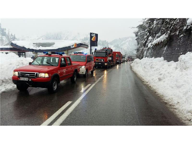 Die Einsatzkräfte der Berufsfeuerwehr, der Wildbachverbauung, des Straßendienstes und der Freiwilligen Feuerwehren sind mit den Geräten und Fahrzeugen in den Ortschaften Ascoli Piceno, Acquasanta Terme, Palmiano, Roccafluvione, Montemonaco und Montefortino in der Provinz Ascoli Piceno unterwegs.