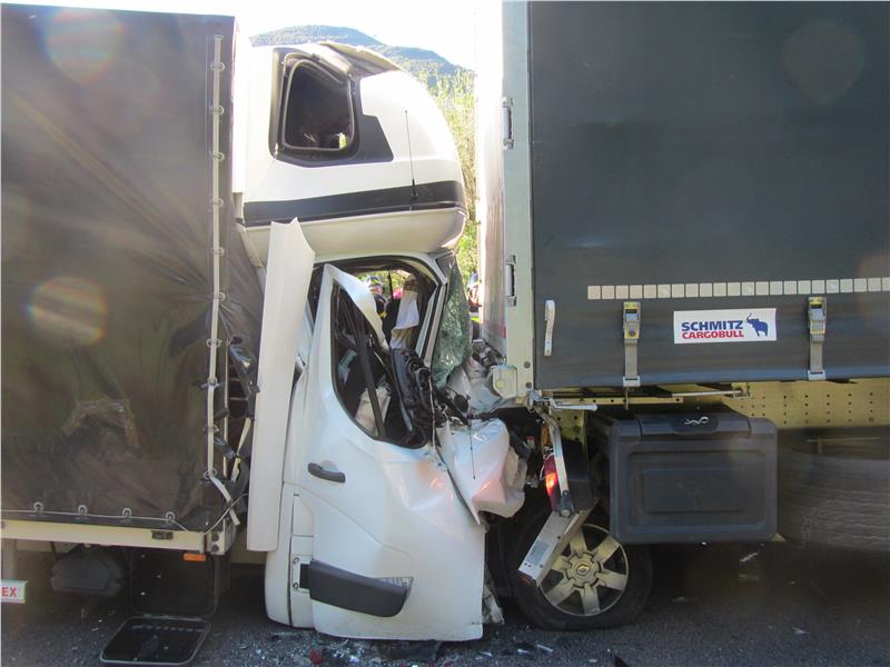 Am Frühen Abend, gegen 18:20 Uhr wurde die Berufsfeuerwehr Bozen zu einem Verkehrsunfall auf die Autobahn, Höhe Mila, gerufen. Ein mit Metallteilen beladener Kleintransporter war auf einen Sattelzug aufgefahren. Durch den Aufprall wurde die Fahrerkabine des Kleintransporters völlig verformt und der Fahrer eingeklemmt. Die Rettung des Verunfallten gestaltete sich sehr schwierig und zeitaufwändig. Während der Rettungsmaßnahmen wurde die Nordspur der Autobahn für ungefähr 40 Minuten komplett für den Verkehr gesperrt. Im Einsatz standen neben der Berufsfeuerwehr Bozen auch die Freiwillige Feuerwehr Kardaun und der Rettungsdienst.