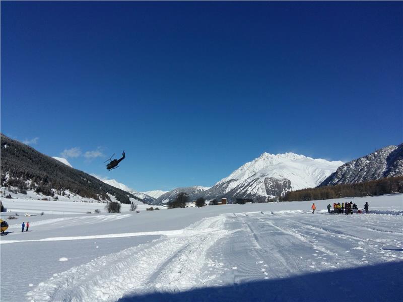 Zwei Transporthubschrauber des Heeres und ein Hubschrauber der Carabinieri sind im Einsatz. Pro Hubschrauber können sieben Personen transportiert werden. Ein Hubschrauber der Finanzwache transportiert Einsatzpersonal und Gerätschaften. Die Rettungshubschrauber Pelikan 1 und Pelikan 2 sind vor Ort und in Bereitschaft für medizinische Notfälle.