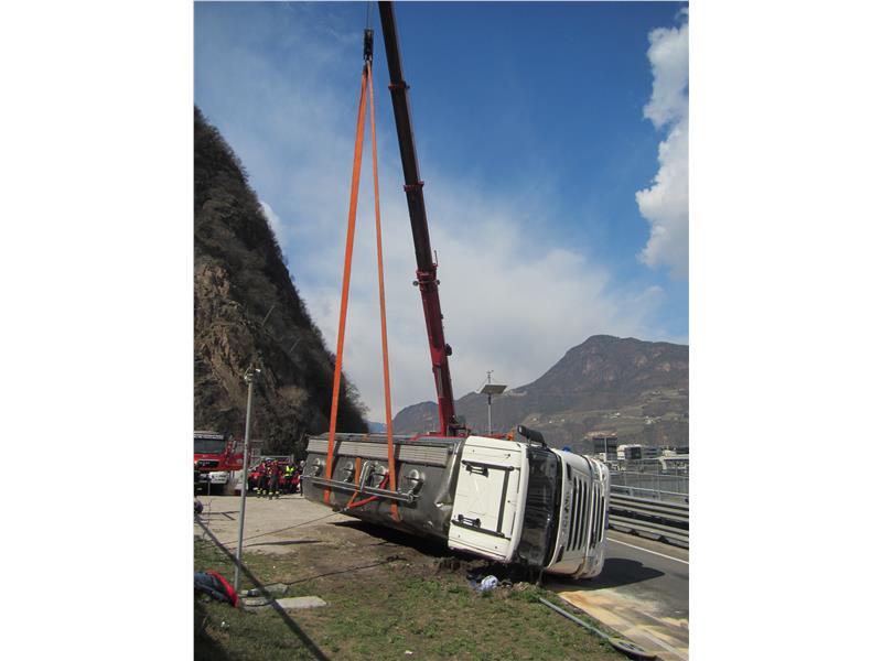 Gegen 10:00 Uhr des 27.03.2018 wurde diese Berufsfeuerwehr auf die Virgelbrücke von Bozen gerufen, nachdem sich ein vollbeladener Milchtransporter der Firma Mila aus nicht geklärten Umständen überschlagen hatte. Der Fahrer selbst verletzte sich nicht. Für die Bergungsarbeiten mussten die 20 t Milch jedoch zunächst unter Aufsicht des landestierärztlichen Dienstes und unter Einhaltung der Hygienebestimmungen umgeladen werden. Mithilfe des Autokranes der Berufsfeuerwehr wurde das Fahrzeug schließlich wieder auf die Räder gestellt. Für die Dauer der Arbeiten bis ca. 12:30 Uhr, blieb die Einfahrtsrampe von der Virgelbrücke Richtung Innsbrucker Straße gesperrt. Im Einsatz standen neben dieser Berufsfeuerwehr die Stadtpolizei, Rettungsdienst, Landestierärztlicher Dienst, Finanzpolizei und ein privates Abschleppunternehmen.
