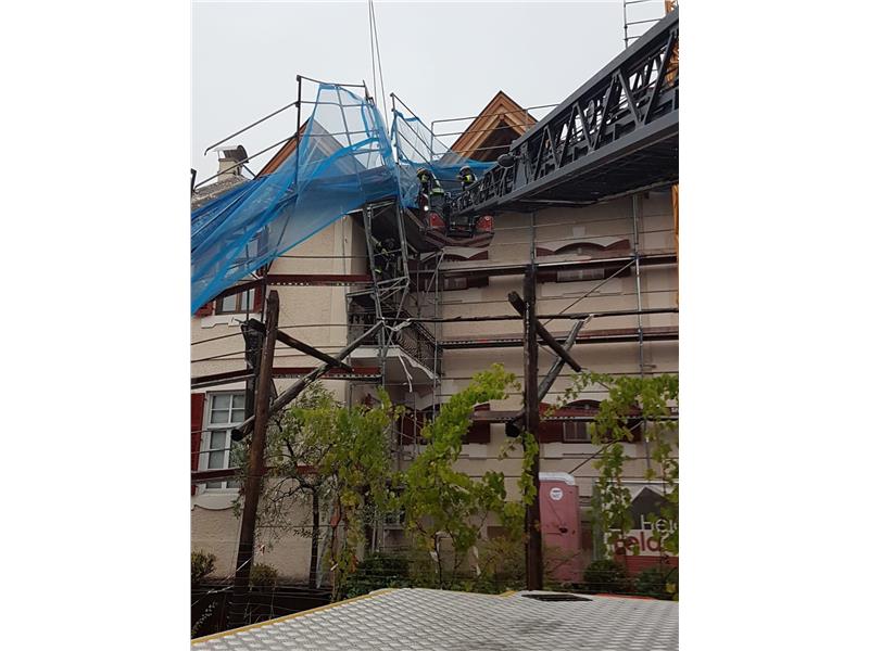 - Die Berufsfeuerwehr stand mit drei Drehleitern im Einsatz; eine Drehleiter mit Mannschaft beteiligte sich bei der Sicherung eines Baugerüstes in St. Pauls/Eppan.