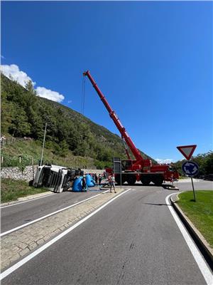 Auf der Vinschgauer Staatsstraße SS38 kippte am Morgen des 16. Augusts gegen 07:45 Uhr ein Sattelschlepper beladen mit Papierpaletten um und blockierte den Kreisverkehr bei der Ortseinfahrt Latsch. Der Fahrer blieb unverletzt.