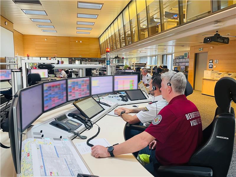 Während zwei Wochenenden garantieren jeweils drei Kollegen der Berufsfeuerwehr Bozen in der integrierten Leitstelle (ILST) der Stadt München den Übersetzungsdienst rund um die Uhr und werden bei Bedarf auch vor Ort eingesetzt. Die Leistelle ist Ansprechpartner für den gesamten Rettungsdienst der Stadt München und ist bei der Feuerwehr angesiedelt.