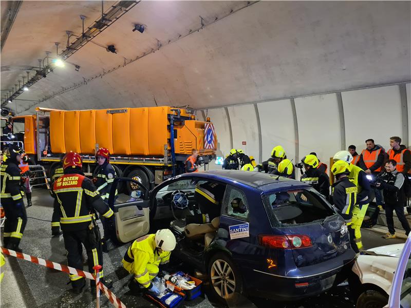 Zwischen Beobachtern sowie beteiligten Rettungs- und Einsatzkräften waren am gestrigen Dienstagabend etwa 150 Menschen im Dienst. Nach dem ersten Aufprall entwickelte sich am Unfallort ein Brand, was das Eingreifen weiterer Feuerwehren mit Tankwagen und hydraulischer Zange erforderte, um die eingeklemmten Verletzten zu bergen. In der Simulation folgte dann die Evakuierung des Tunnels, in dem sich Rauch entwickelt hatte. Die Übung ist unter anderem vom Benutzerservicezentrum CAU aus Trient und der Autobahnmeisterei Bozen vor Ort überwacht worden, wo ein Ad-hoc-Standort eingerichtet wurde.