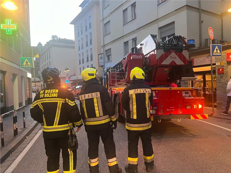 Bozen, 25.11.2023 - Am Samstagmorgen gegen 6.30 Uhr wurde die Berufsfeuerwehr Bozen zu einem Brand in einem Mehrfamilienhaus in der Wangergasse 61 gerufen. In einer Wohnung im fünften Stock war aus bisher unbekannter Ursache ein Brand ausgebrochen.
