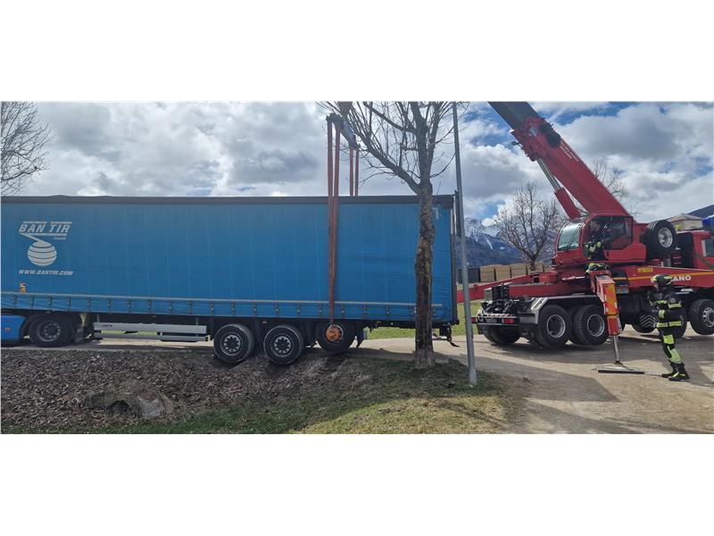 Bei Niederrasen ist ein Sattelauflieger von einem Feldweg abgekommen und musste von der Berufsfeuerwehr geborgen werden.