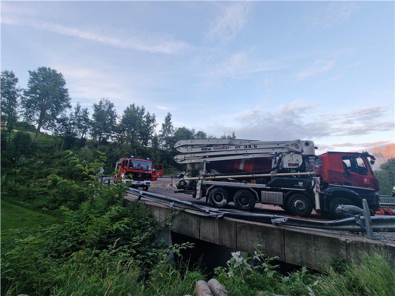 Gegen 17:45 Uhr wurde die Kranmannschaft der Berufsfeuerwehr Bozen zur Unterstützung der Freiwilligen Feuerwehr Lengmoos/Klobenstein gerufen. Auf der Landesstraße LS73 bei Kilometer 17 in der Fraktion Lengmoos ist eine Fahrmischerbetonpumpe in einer Linkskurve zur Seite gekippt. Der Fahrer wurde glücklicherweise nicht eingeklemmt und wurde nach einer Erstversorgung durch die Sanitäter des Weißen Kreuzes in Bozner Spital eingeliefert.