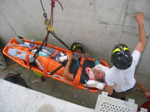 Am Vormittag des 11.08.2004 wurde die Berufsfeuerwehr Bozen zu einem Arbeitsunfall in die Voltastrasse in Bozen gerufen. Dabei ist ein Arbeiter in einen Lüftungsschacht gefallen und wurde mittelschwer Verletzt. Während der herbeigerufene Notarzt des Weissen Kreuzes den Verletzten erstversorgte, führte die Berufsfeuerwehr Bozen die Rettung durch: wegen dem engen Schacht musste der verletzte Bauarbeiter von der Höhenrettungsmannschaft der Berufsfeuerwehr Bozen mit dem Heckkran des Rüstwagens gerettet werden.