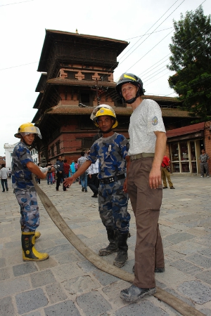 Die Bozner Kollegen üben mit den nepalesischen Feuerwehrmännern auf den Strassen der Hauptstadt - Bei einem Kellerbrand kam bereits das übergebene Tanklöschfahrzeug zum Einsatz - Einige Bildeindrücke