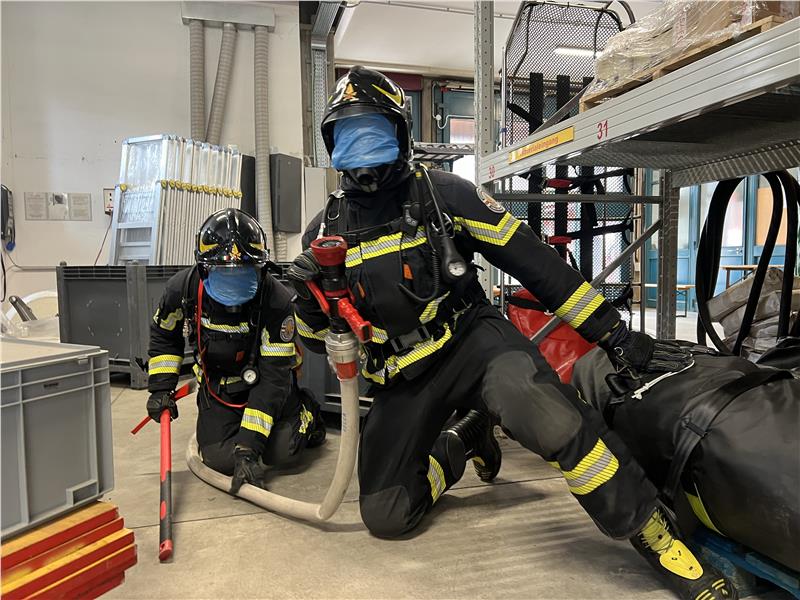 Der Ausbildungskurs ist Teil eines Ausbildungswettbewerbs: 13 Feuerwehrmann-Anwärter und eine Feuerwehrfrau-Anwärterin hatten schon vorher einen Beruf erlernt. Seit September wurden sie nach einem Auswahlverfahren in Theorie und Praxis ausgebildet, berichtet Kursleiter Brandinspektor Felix Reggiani.