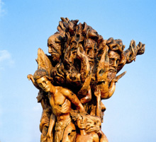 Nella splendida cornice del Giardino botanico di Merano saranno presentate al pubblico tre grandi sculture che l’artista ha creato nel tronco di altrettanti olivi secolari del peso di circa una tonnellata e mezza ciascuno. Le sculture rappresentano in maniera particolarmente suggestiva il Purgatorio, l’Inferno ed il Paradiso di Dante.