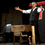 La compagnia Alberto De Bastiani con pochi oggetti di legno, i pupazzi del gatto e della volpe, i burattini del teatro di Mangiafuoco, le canzoni del grillo parlante e del paese dei balocchi, un solo attore racconta e darà voce a "La storia di Pinocchio"