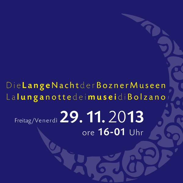 Verrà presentata venerdì 22 novembre, alle ore 10, in una conferenza stampa a Museion, la Lunga notte dei musei di Bolzano 2013. Sei i musei bolzanini aderenti a questa dodicesima edizione, che avrà luogo il 29 novembre.