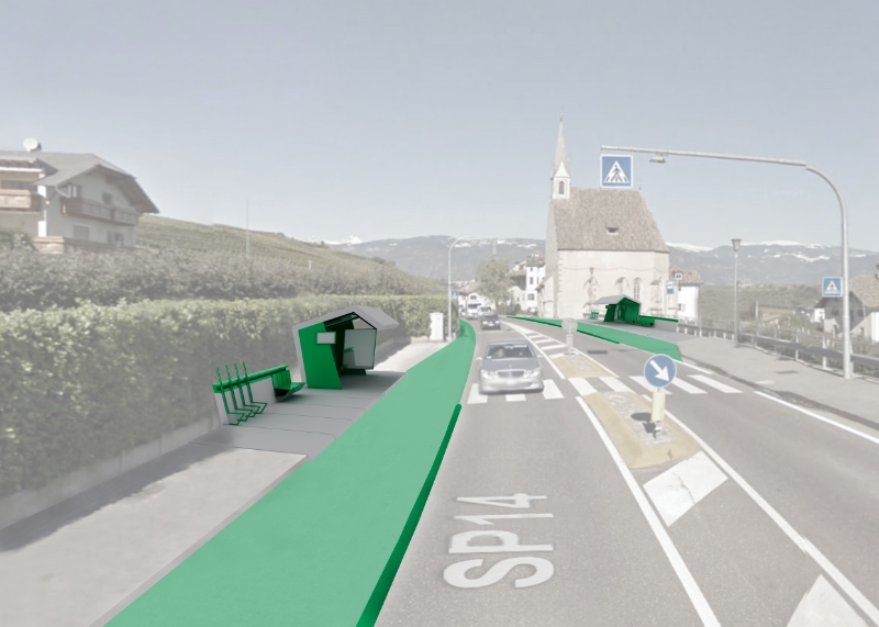 Una chiara delimitazione rispetto alla carreggiata, pannelli fotovoltaici sul tetto della pensilina, buona integrazione nel paesaggio: sono le caratteristiche delle future fermate del metrobus express tra l’Oltradige e Bolzano. Il progetto firmato dall'architetto Markus Scherer, vincitore del concorso per il nuovo layout, è stato presentato ieri (19 giugno) a Bolzano.