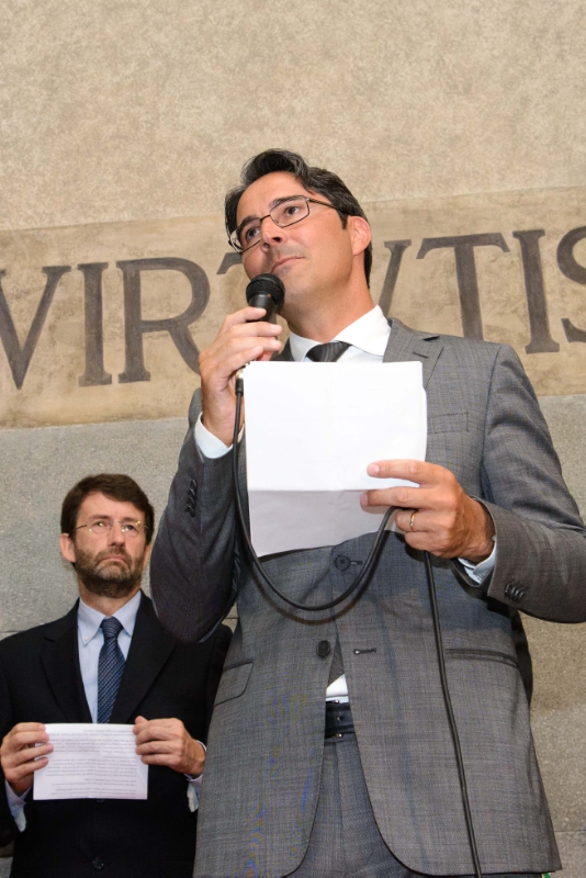 Di "valore simbolico" e di "collaborazione preziosa" ha parlato il ministro Dario Franceschini: "Ci troviamo oggi sotto un monumento che è stato foriero di divisioni e scontri, ma che oggi è stato trasformato in un luogo di memoria degli errori e degli sbagli, ma anche simbolo di pacificazione e rifiuto dei totalitarismi". Per Franceschini questo luogi di memoria "ci rende consapevoli di quanta strada è stata fatta. Oggi l'Alto Adige è un esempio di convivenza e di tutela delle minoranze, e con il suo multiculturalismo e plurilinguismo è indirizzato verso l'Europa." "E' stato emozionante - ha concluso il Ministro - sotto un monumento simbolo di tante divisioni sentir parlare in tedesco e in italiano: è la prova di quanta strada abbiamo fatto e di quanta ancora ne faremo."
